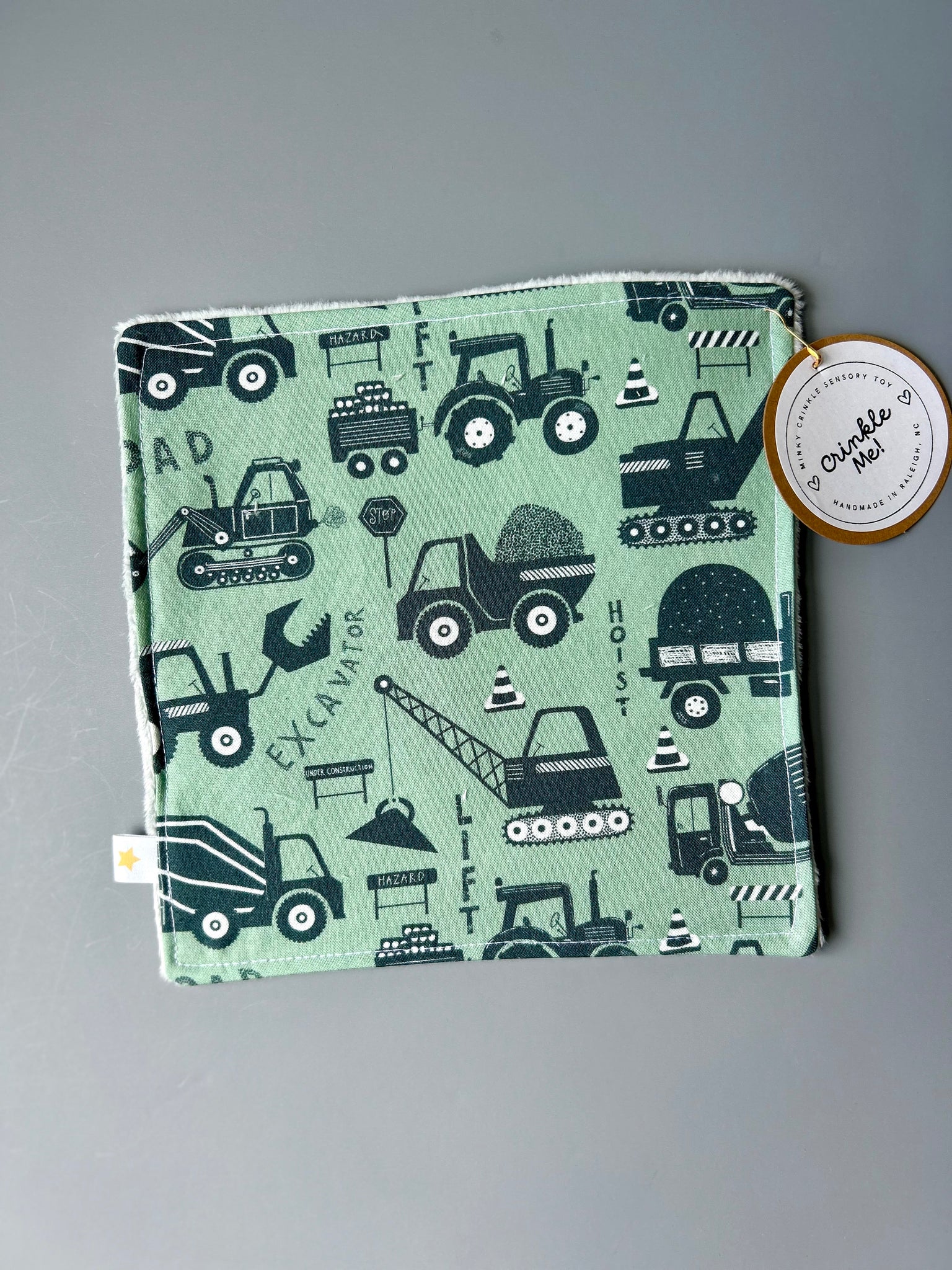 Each 7"x7" crinkle toy is made from the softest Minky fabric the outside and USA Safety Certified EN71 and CPSIA Crinkle material inside.